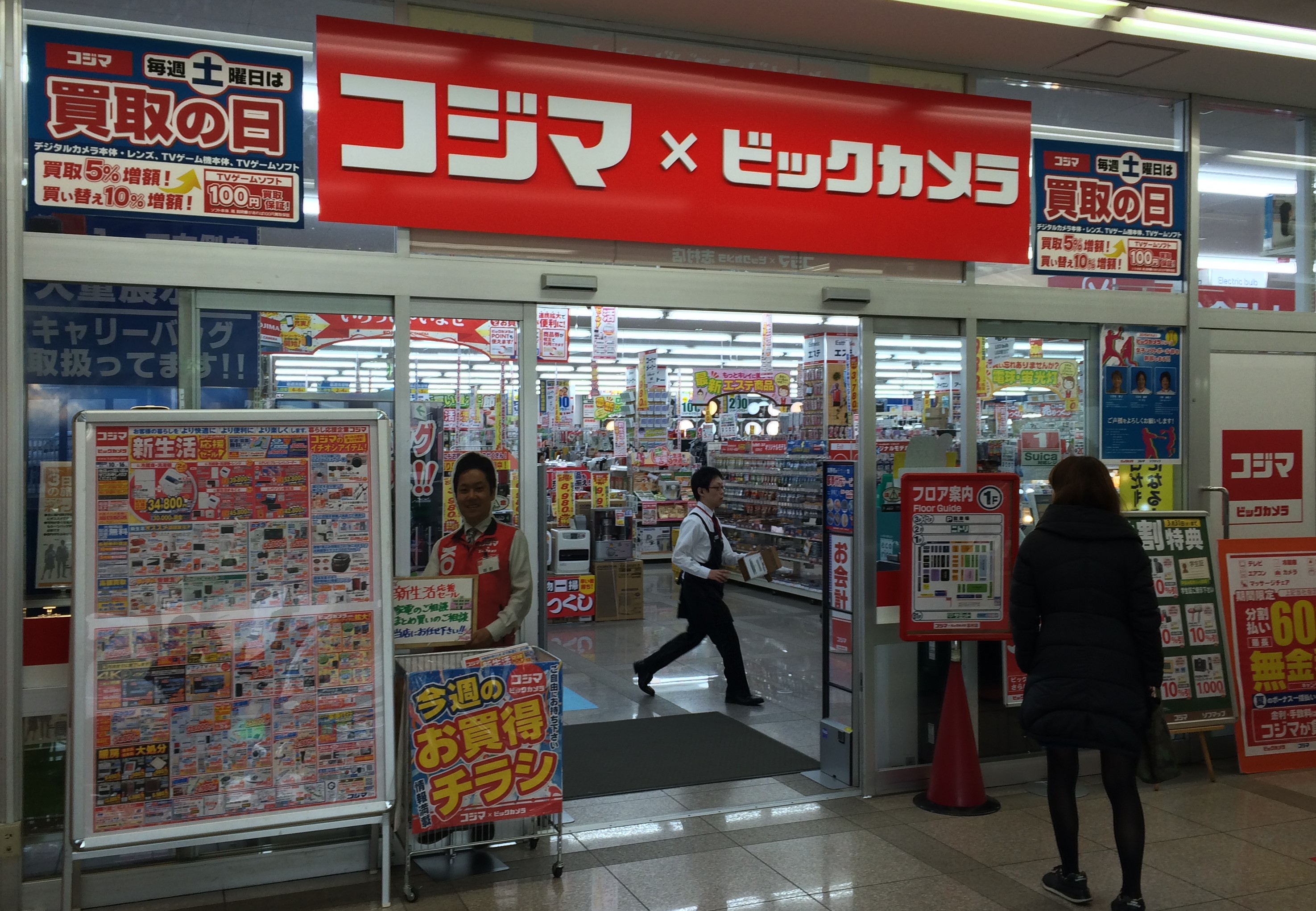 志村三丁目駅前に位置する「コジマ×ビックカメラ 志村店」。